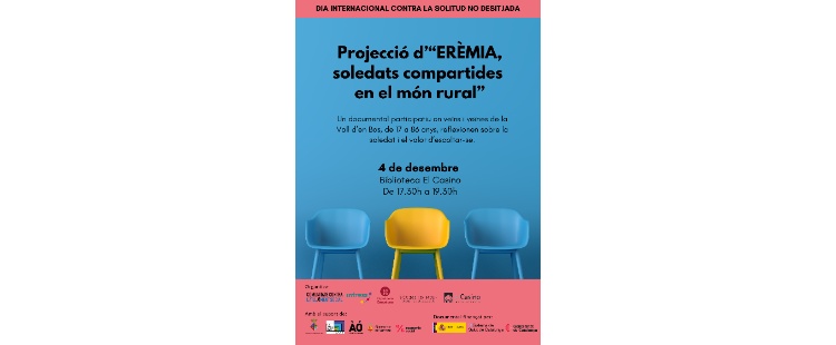 Projecció del documental Erèmia, soledats compartides en el món rural posa en relleu la lluita contra la soledat no volguda amb participació del projecte Nexes