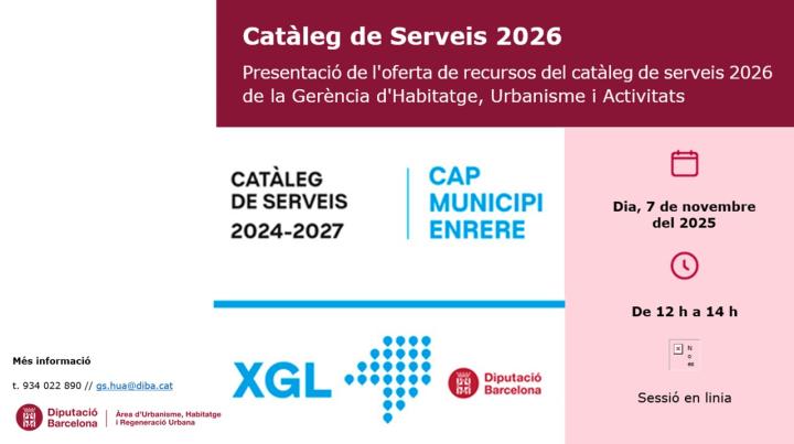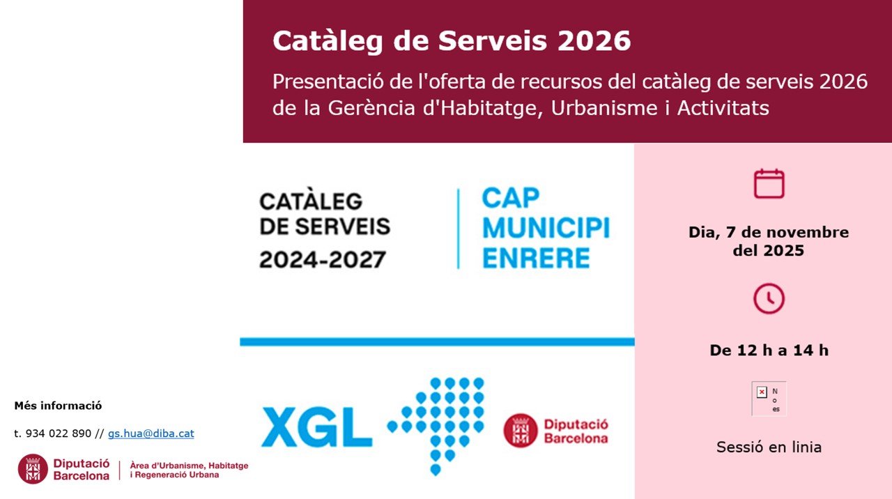 La Gerència de Serveis d'Habitatge, Urbanisme i Activitats us convida a una sessió informativa, en línia, de l'oferta de recursos i les principals novetats del 2026.