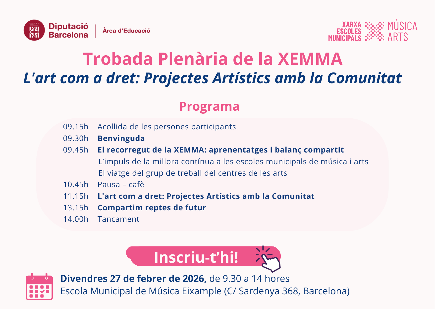 El passat divendres 23 de gener, va tenir lloc el primer Obrim les Portes de la Xarxa d'escoles municipals de música i arts, a l'Escola Municipal de Música Blai Net de Sant Boi de Llobregat. En aquesta ocasió, 35 persones -direccions i professorat d’escoles de música i arts- de 20 municipis, van...